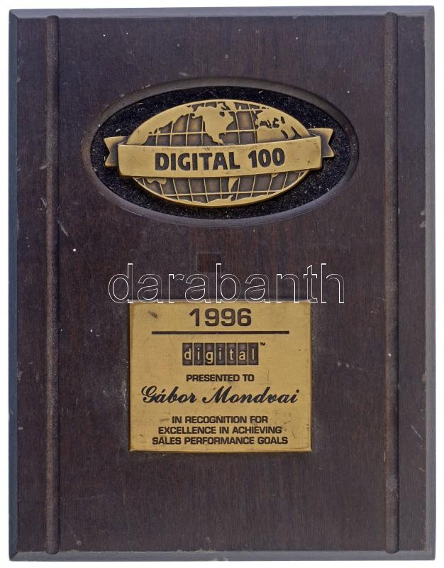1996. "DIGITAL 100" plakett fa talpon "1996 DIGITAL PRESENTED TO GÁBOR MONDVAI IN RECOGNITION FOR EXCELLENCE IN ACHIEVING SALES PERFORMANCE GOALS" T:1-,2