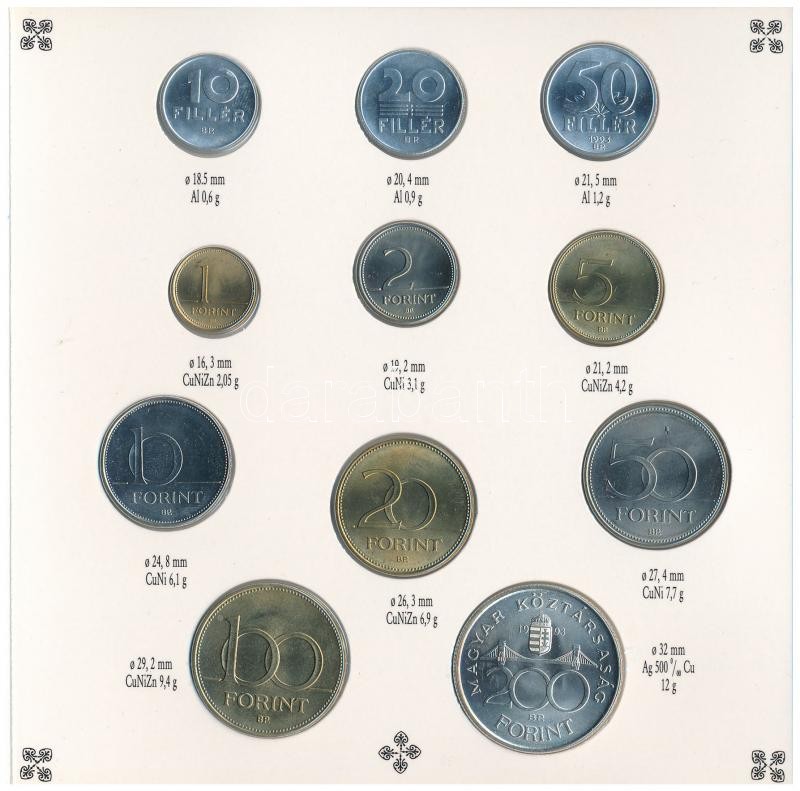 Leírás: 1993. 10f-200Ft (11xklf) forgalmi sor dísztokban, benne 1993. 200Ft Ag "MNB", "Magyarország pénzérméi" sorozat T:BU