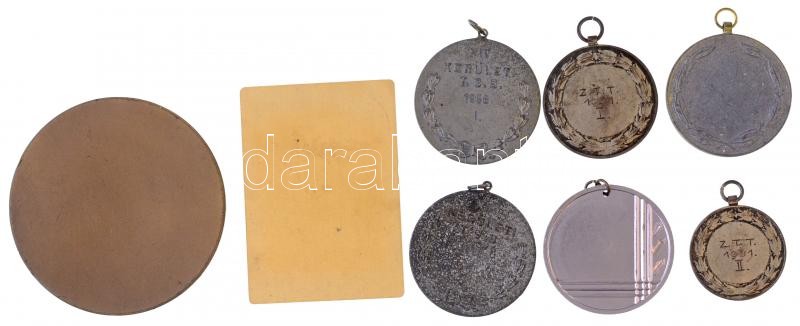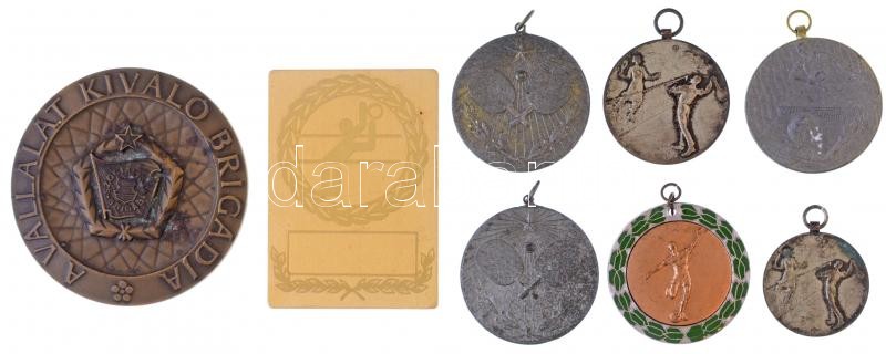 Leírás: 7db-os vegyes sportérem tétel + Vincze Dénes (1914-1972) DN "A Vállalat Kiváló Brigádja" Br plakett (70mm) T:2-3