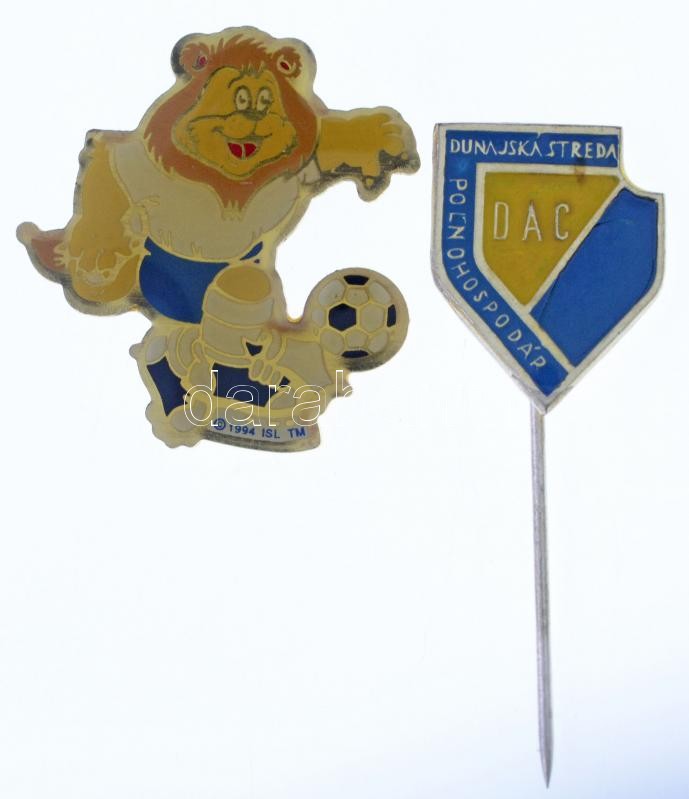 Svájc 1994. " Az Európa Bajnokság hivatalos kabalafigurája" műgyantás fém jelvény + Csehszlovákia ~1980. "Dunaszerdahelyi AC (DAC)" fém labdarúgó jelvény T:1,1-