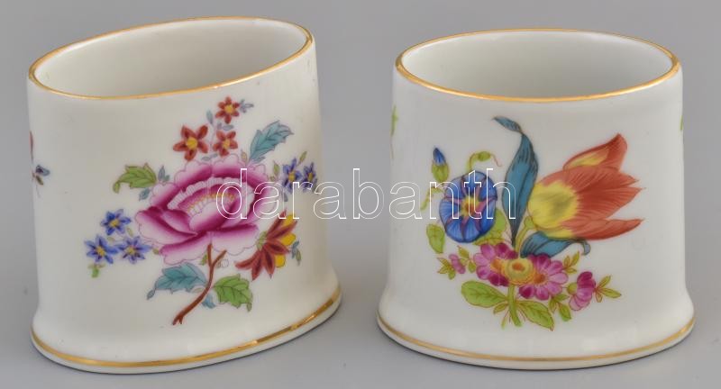 Leírás: Két Herendi fogpiszkálótartó különböző mintával. Eton, virágos. Kézzel festett, jelzett, minimális kopással 5 cm