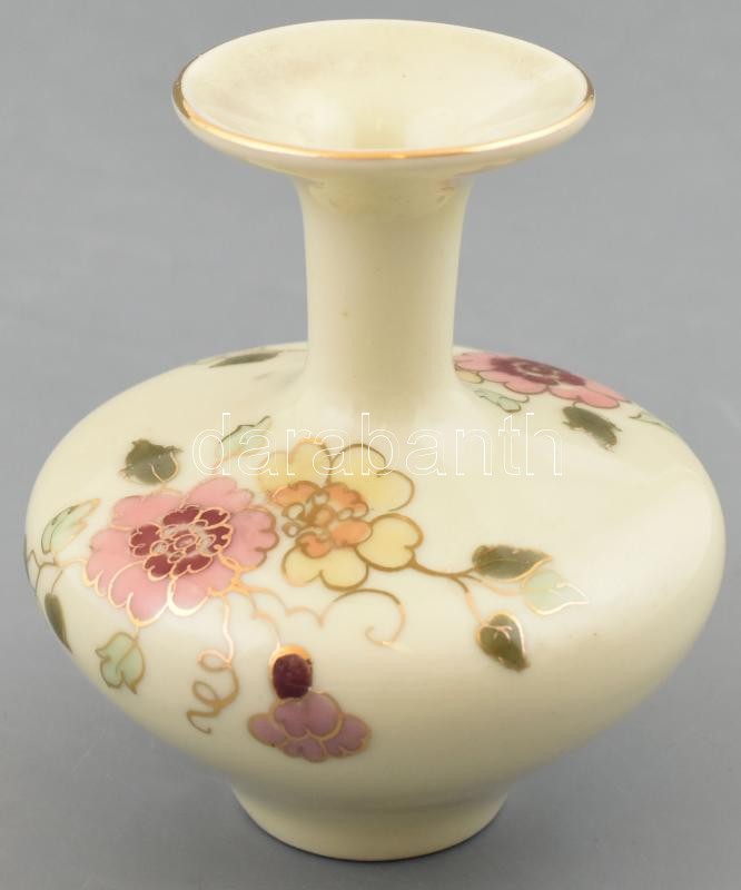 Leírás: Zsolnay kis méretű virágmintás porcelán váza, kézzel festett, jelzett, hibátlan. m: 8 cm