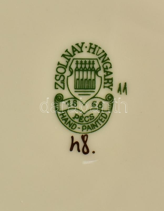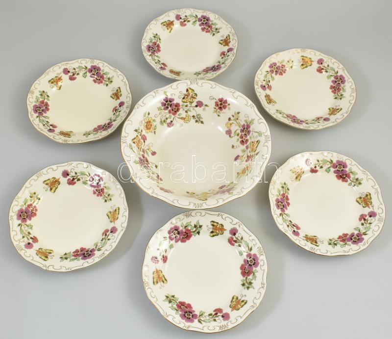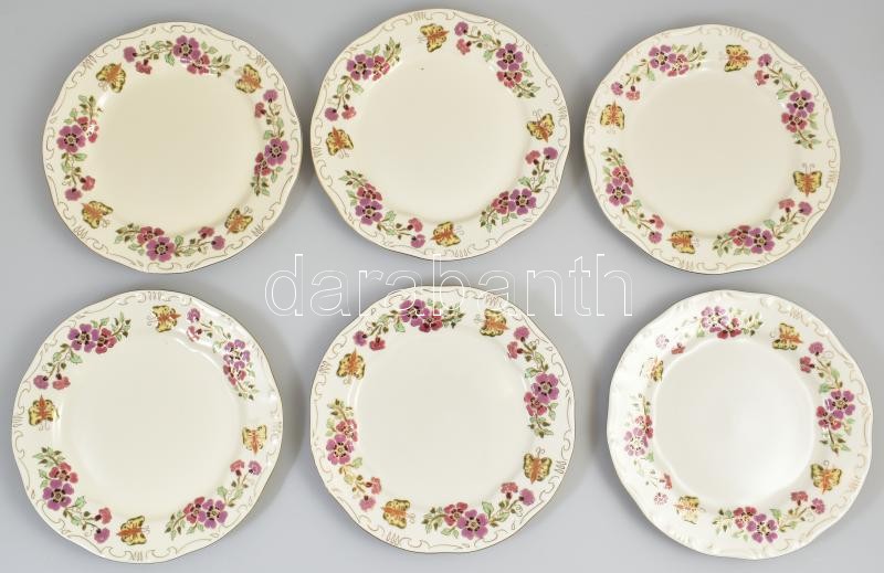 Leírás: Zsolnay pillangó mintás étkészlet. Hat személyes. Kézzel festett, jelzett, komplett, hibátlan.