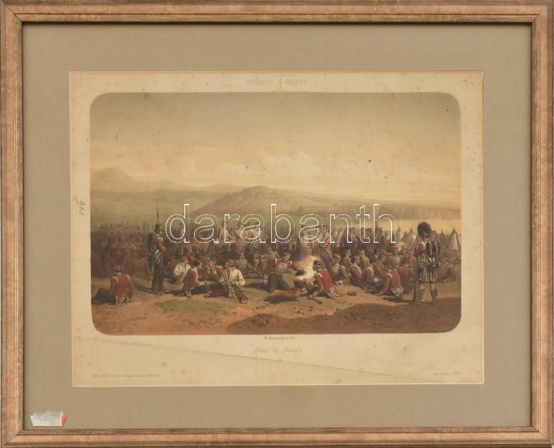 Benoist, Philippe (1813-1905 körül): Csata előtt. Litográfia, papír. Lap tetején szakadással, alján töréssel, kissé foltos. Üvegezett keretben, 24×30 cm
