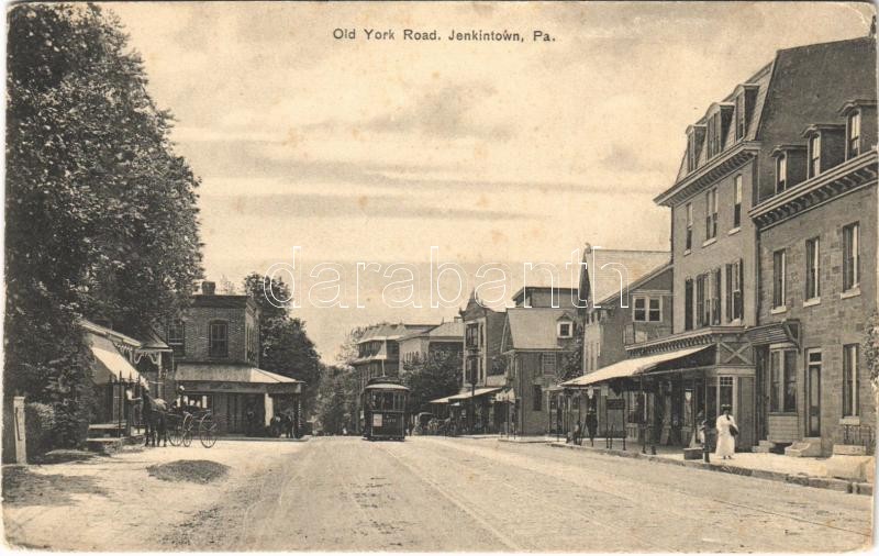 Jenkintown (Pennsylvania), Old York Road, tram, shops (cut) https://www.darabanth.com/hu/395-Gyorsarveres/395.0/Kepeslapok/Amerikai-Egyesult-Allamok~1000018/Jenkintown-Pennsylvania-Old-York-Road-tram-shops-cut~II2335379