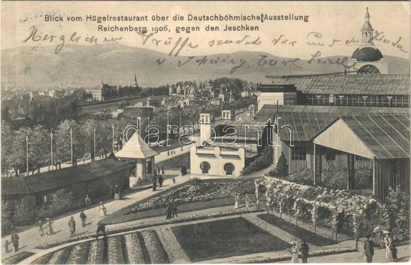 1906 Liberec, Reichenberg; Blick vom Hügelrestaurant über die Deutschböhmische Ausstellung gegen den Jeschken / View from the restaurant over the German-Bohemian Exhibition (EK)