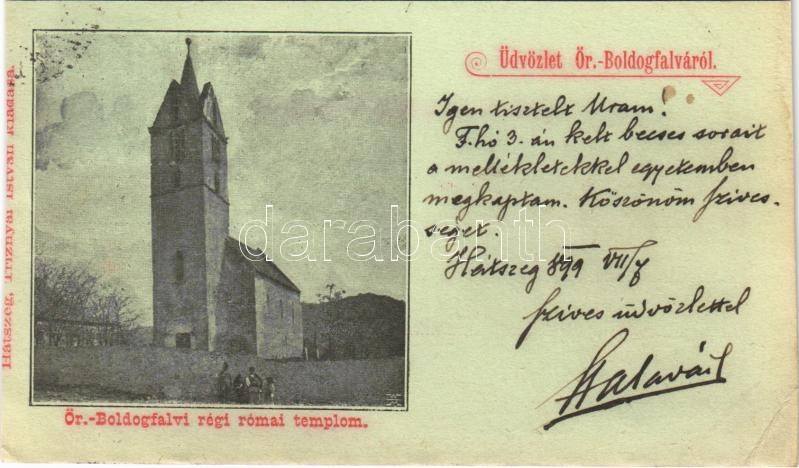 1899 (Vorläufer) Őraljaboldogfalva, Sântamaria-Orlea (Hátszeg); Őr.-Bo... https://www.darabanth.com/hu/395-Gyorsarveres/395.0/Kepeslapok/Erdely~1000006/1899-Vorlaufer-Oraljaboldogfalva-SC3A2ntamaria-Orlea-Hatszeg-Or-Boldogfalvi-regi-romai-te~II2399182