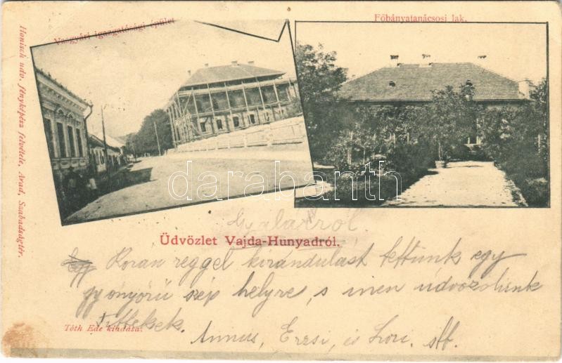1901 Vajdahunyad, Hunedoara; Vasgyári igazgatósági épület építés alatt, Főbányatanácsosi lak. Honisch fényképész felvétele, Tóth Ede kiadása / directorate building of the iron works in construction, Mining Counselor villa (EK)