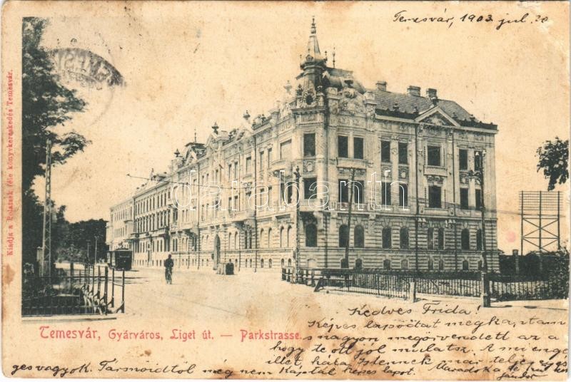 1903 Temesvár, Timisoara; Gyárváros, Liget út, villamos / Fabric, stre... https://www.darabanth.com/hu/395-Gyorsarveres/395.0/Kepeslapok/Erdely~1000006/1903-Temesvar-Timisoara-Gyarvaros-Liget-ut-villamos-Fabric-street-tram-vagott-cut~II2401634