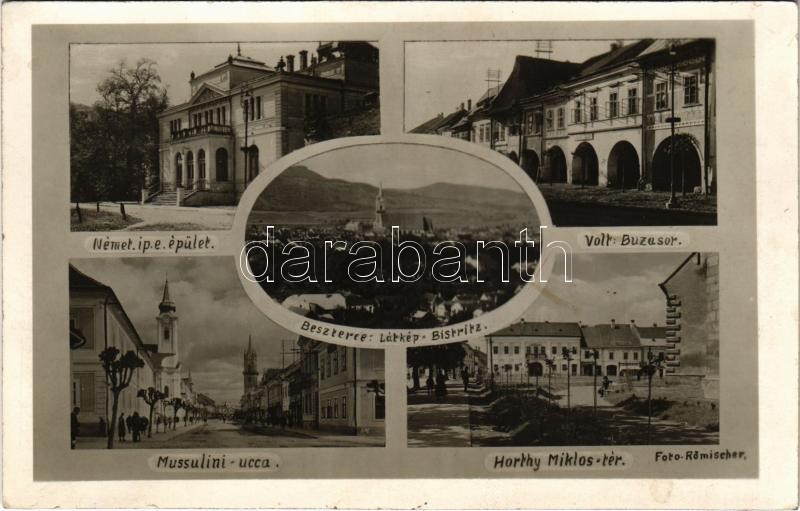 1944 Beszterce, Bistritz, Bistrita; Horthy Miklós tér, Mussolini utca,... https://www.darabanth.com/hu/395-Gyorsarveres/395.0/Kepeslapok/Erdely~1000006/1944-Beszterce-Bistritz-Bistrita-Horthy-Miklos-ter-Mussolini-utca-Nemet-ip-e-epulet-Vol~II2164504