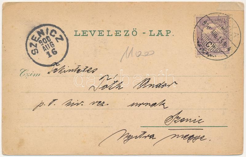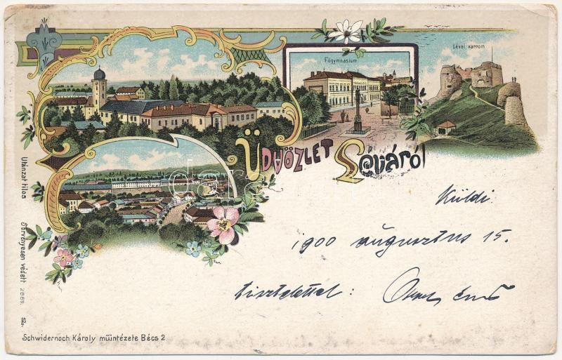 Leírás: 1900 Léva, Levice; főgimnázium, várrom. Schwidernoch Károly 2889. / grammar school, castle ruins. Art Nouveau, floral, litho (r)