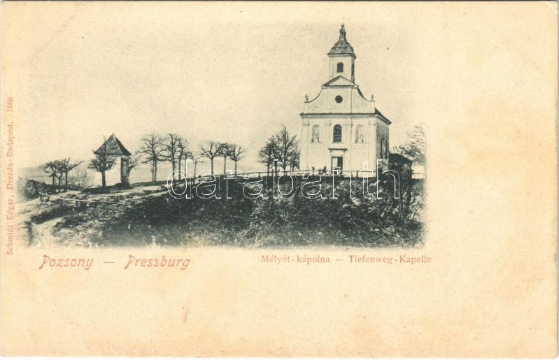 Pozsony, Pressburg, Bratislava; Mélyút kápolna / chapel / Tiefenweg Ka... https://www.darabanth.com/hu/395-Gyorsarveres/395.0/Kepeslapok/Felvidek~1000007/Pozsony-Pressburg-Bratislava-Melyut-kapolna-chapel-Tiefenweg-Kapelle~II2396352