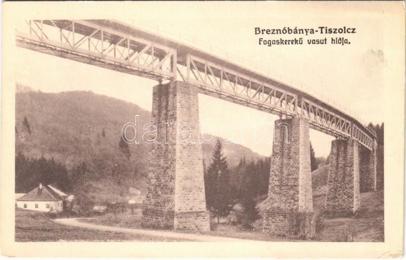 Tiszolc, Tisovec; Tiszolc-völgyi fogaskerekű vasút Breznóbánya és Tiszolc között, iparvasút, híd, viadukt / standard gauge cogwheel railway between Brezno nad Hronom and Tisovec, industrial railway viaduct (EK)