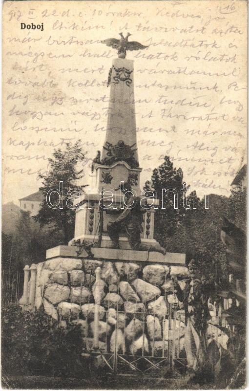1917 Doboj, Kriegsmonument / WWI Austro-Hungarian K.u.K. military monu... https://www.darabanth.com/hu/395-Gyorsarveres/395.0/Kepeslapok/Katonai~1000078/1917-Doboj-Kriegsmonument-WWI-Austro-Hungarian-KuK-military-monument-EB~II2399639