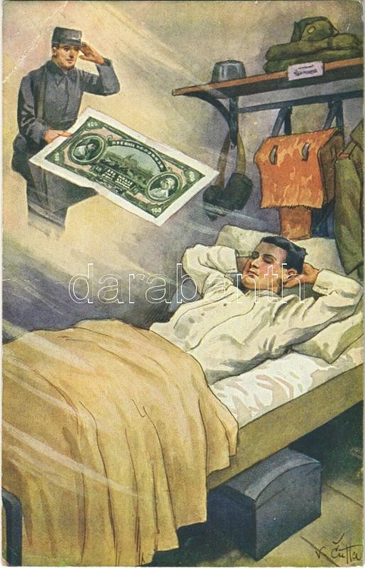 Leírás: 1928 Prijemny sen vojinuv / Czech military art postcard, dream of a soldier (EB)