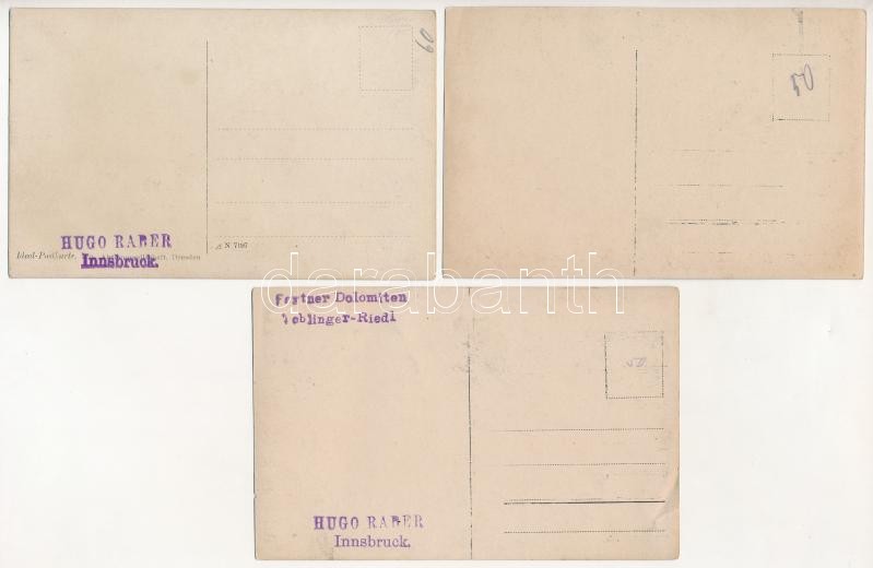 3 db RÉGI osztrák-magyar első világháborús katonai fotó képeslap a Dolomitokból: Sexten Stein, Lanzinger Säge, Doblinger Riedl / 3 pre-1945 WWI K.u.K. military photo postcards from the Dolomites: Sexten Stein, Lanzinger Säge, Doblinger Riedl (Hugo Raber)
