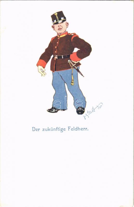 Leírás: Der zukünftige Feldherr. K.u.K. Militärhumor / Osztrák-magyar katonai humor / Austro-Hungarian military humour. B.K.W.I. 530-1. s: Fritz Schönpflug