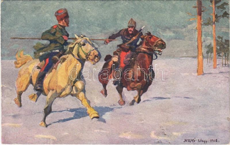 Leírás: Párbaj / Zweikampf / WWI Austro-Hungarian K.u.K. military art postcard s: Juszkó (b)