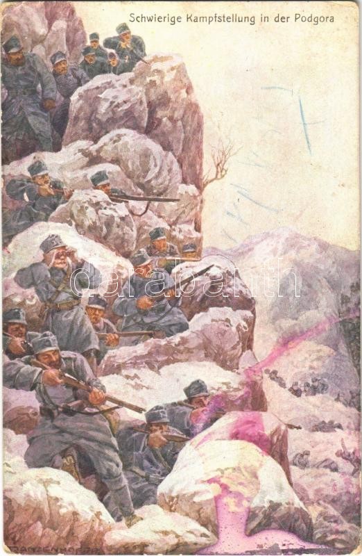 Schwierige Kampfstellung in der Podgora. Offizielle Postkarte für das Rote Kreuz, Kriegsfürsorgeamt und Kriegshilfsbüro / WWI Austro-Hungarian K.u.K. military art postcard, support fund s: Ranzenhofer (fl)
