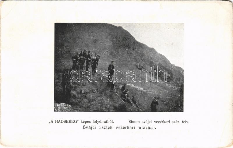 Svájci tisztek vezérkari utazása. "A Hadsereg" képes folyóiratból. Simon svájci vezérkari százados felvétele. Margit Creme reklám a hátoldalon / Swiss military officers (szakadás / tear)