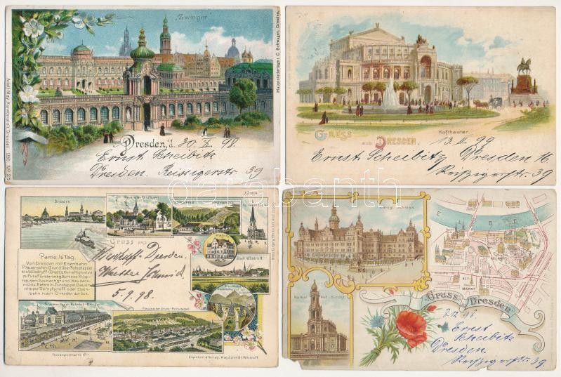 Leírás: 12 db RÉGI hosszúcímzéses külföldi város képeslap, több lithoval / 12 pre-1900 European town-view postcards, many litho