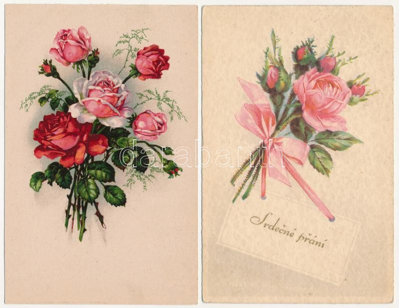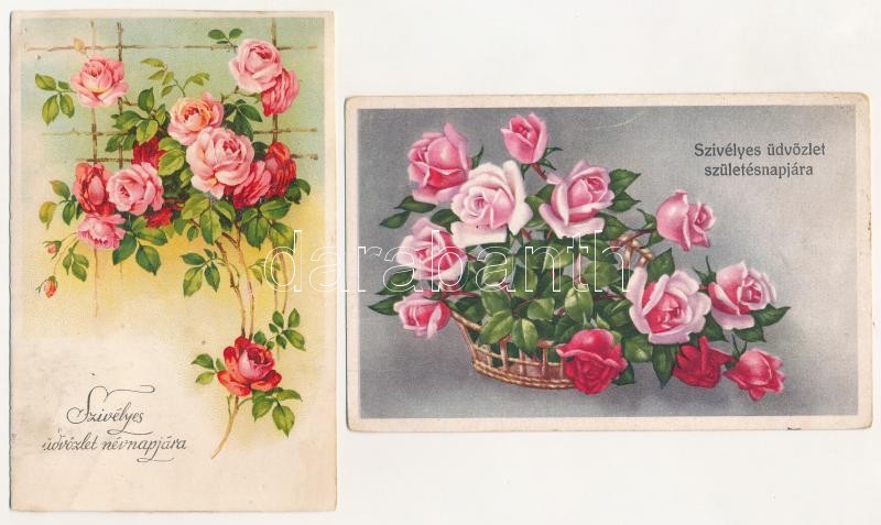 Leírás: 12 db főleg RÉGI motívum képeslap: virágos üdvözlő / 12 mostly pre-1945 motive postcards: flower, rose greeting