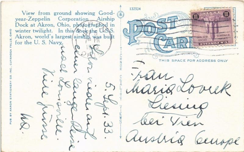 1933 Akron (Ohio), Goodyear Zeppelin Corp's Factory and Dock, air... https://www.darabanth.com/hu/395-Gyorsarveres/395.0/Kepeslapok/Leghajo~1000082/1933-Akron-Ohio-Goodyear-Zeppelin-Corps-Factory-and-Dock-airship-hangar-leghajo-hangar~II2344591