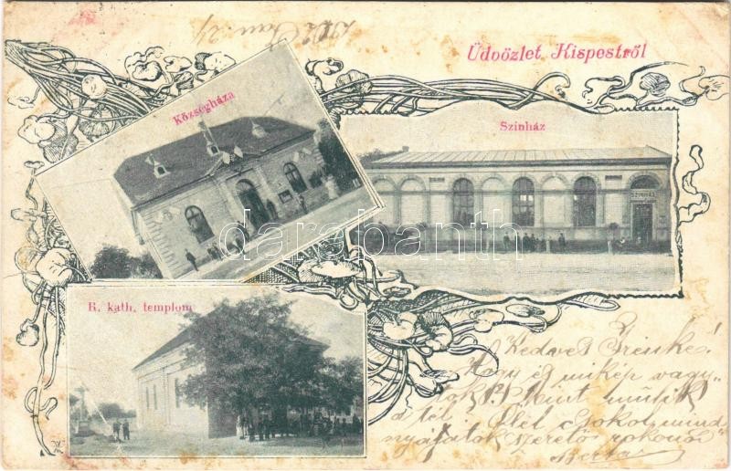 1902 Budapest XIX. Kispest, Községháza, Színház, Római katolikus templ... https://www.darabanth.com/hu/395-Gyorsarveres/395.0/Kepeslapok/Magyarorszag~1000005/1902-Budapest-XIX-Kispest-Kozseghaza-Szinhaz-Romai-katolikus-templom-Art-Nouveau-floral-~II2400072