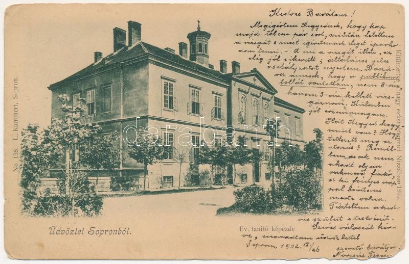Leírás: 1902 Sopron, Evangélikus tanítóképezde. L. Kummert No. 158. (b)