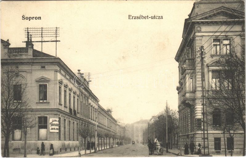 1906 Sopron, Erzsébet utca, Löbl M. táncintézet Deák (EK) https://www.darabanth.com/hu/395-Gyorsarveres/395.0/Kepeslapok/Magyarorszag~1000005/1906-Sopron-Erzsebet-utca-Lobl-M-tancintezet-Deak-EK~II2400360