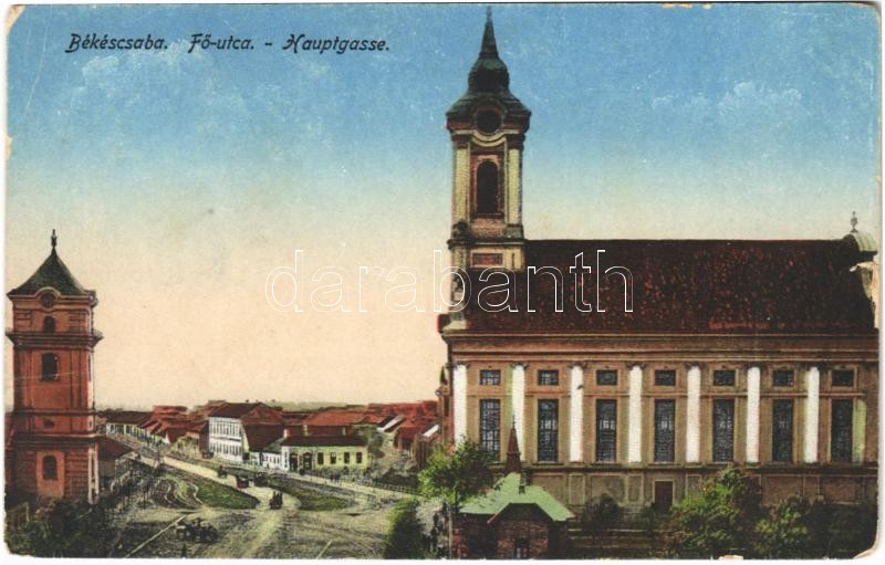 1921 Békéscsaba, Fő utca, templom (szakadás / tear)
