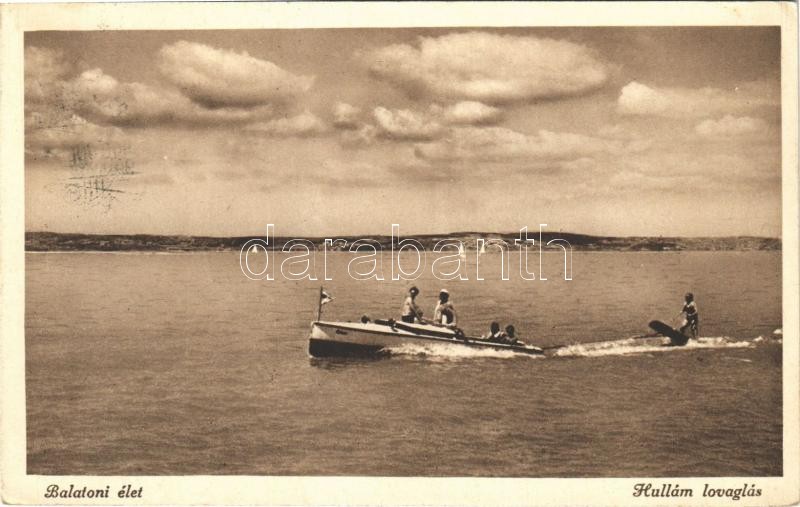 1940 Balaton, Hullámlovaglás, motorcsónak (EK) https://www.darabanth.com/hu/395-Gyorsarveres/395.0/Kepeslapok/Magyarorszag~1000005/1940-Balaton-Hullamlovaglas-motorcsonak-EK~II2342780