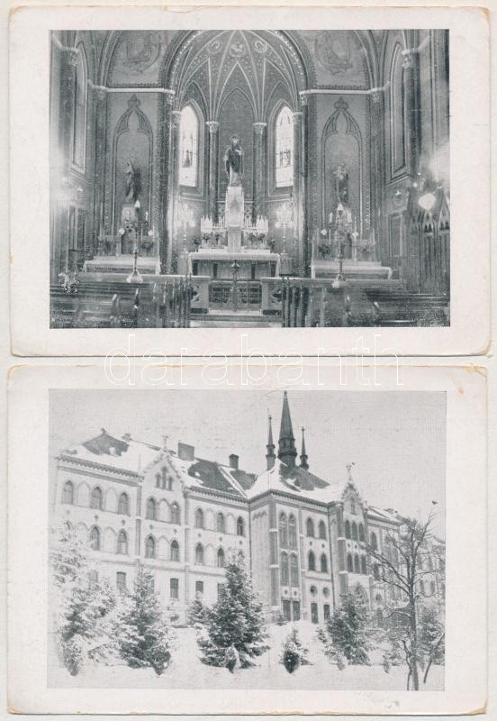 Leírás: Budapest XII. Széchenyi-hegy, Farkasvölgyi út 12. Isteni Szeretet Leányai Társulata Tartományháza télen és templom részlet - 2 db képeslap