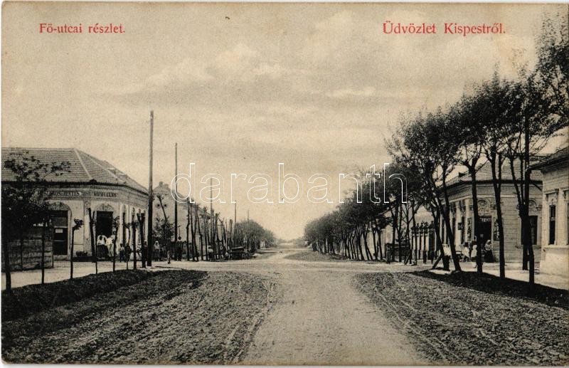 Leírás: Budapest XIX. Kispest, Fő utca, Kozma Lajos mészáros és hentes üzlete. Fischhof Henrik kiadása