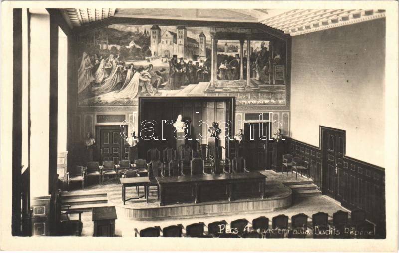 Pécs, Egyetemi aula Dudits képével, belső. Zsabokorszky mérnök photo https://www.darabanth.com/hu/395-Gyorsarveres/395.0/Kepeslapok/Magyarorszag~1000005/Pecs-Egyetemi-aula-Dudits-kepevel-belso-Zsabokorszky-mernok-photo~II2397412
