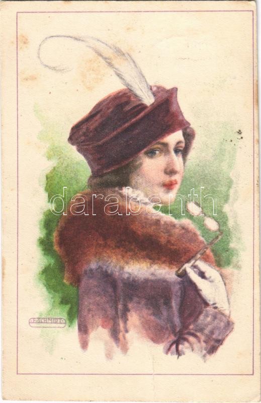 1923 Lady art postcard. B.K.W.I. 133-4. s: F. Schmidt (EK) https://www.darabanth.com/hu/395-Gyorsarveres/395.0/Kepeslapok/Muveszlapok~1000085/1923-Lady-art-postcard-BKWI-133-4-s-F-Schmidt-EK~II2362344