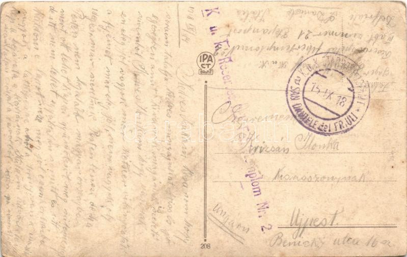 Leírás: 1918 San Daniele del Friuli, Castello / castle. Montage with lady + "K.U.K. ETAPPENPOSTAMT SAN DANIELE DEL FRIULI" (EB)