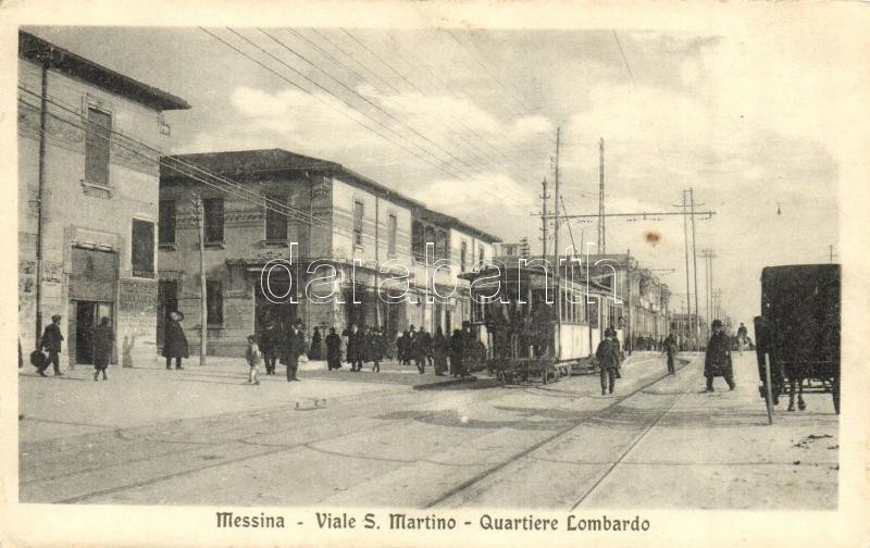 Leírás: Messina, Viale S. Martino, Quartiere Lombardo / street view with tram