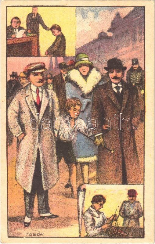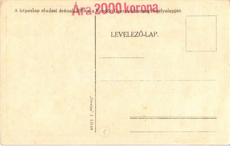 Leírás: Rendőri Gyermekbíróság Segélyalap propagandalapja / Hungarian charity propaganda card against juvenile delinquency s: Tábor