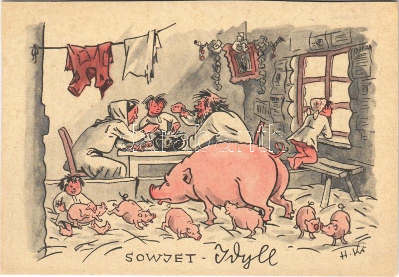 Sowjet-Idyll / Anti-Soviet propaganda, mocking art postcard with pigs.... https://www.darabanth.com/hu/395-Gyorsarveres/395.0/Kepeslapok/Propaganda-politika~1000086/Sowjet-Idyll-Anti-Soviet-propaganda-mocking-art-postcard-with-pigs-Soldatenblatter-fur-Feier-~II2401400