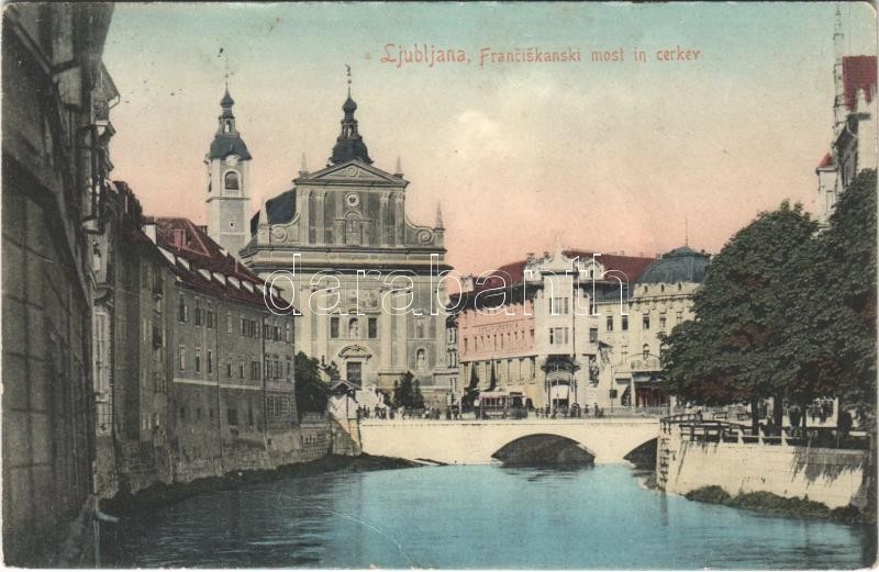1906 Ljubljana, Laibach; Franciskanski most in cerkev / bridge, church... https://www.darabanth.com/hu/395-Gyorsarveres/395.0/Kepeslapok/Szlovenia~1000059/1906-Ljubljana-Laibach-Franciskanski-most-in-cerkev-bridge-church-tram-crease~II2318413