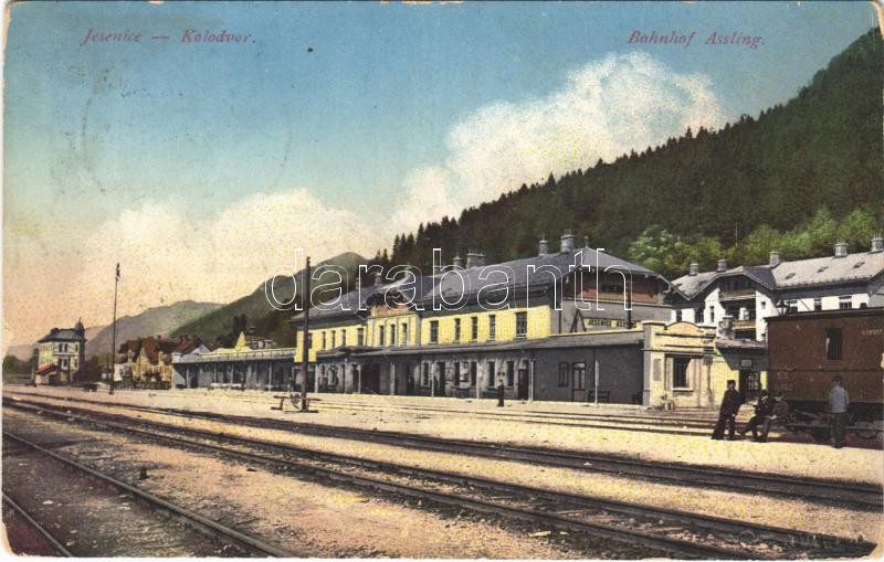 Leírás: 1913 Jesenice, Assling, Aßling; Bahnhof / Kolodvor / railway station, train (EK)
