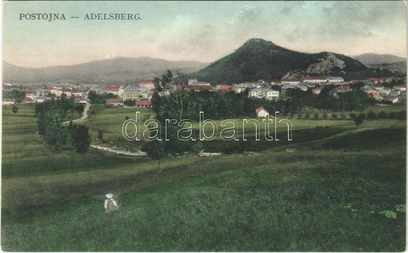 Postojna, Adelsberg; general view. M. Seber https://www.darabanth.com/hu/395-Gyorsarveres/395.0/Kepeslapok/Szlovenia~1000059/Postojna-Adelsberg-general-view-M-Seber~II2397507