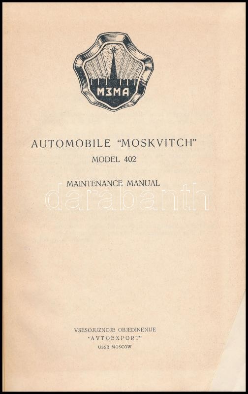 Automobile "Moskvitch" model 402. Maintenance manual. Moscow... https://www.darabanth.com/hu/395-Gyorsarveres/395.0/Konyvek/Konyvek-Technika~1500012/Automobile-Moskvitch-model-402-Maintenance-manual-Moscow-en-Autoexport-Angol-nyelven-KiadC3~II2396717