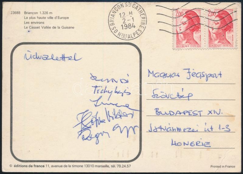 1984 Korcsolyázók által aláírt képeslap (Zsitva, Rozgonyi, Tichy) https://www.darabanth.com/hu/395-Gyorsarveres/395.0/Mutargy-papirregiseg-egyeb/Alairas~500020/1984-Korcsolyazok-altal-alairt-kepeslap-Zsitva-Rozgonyi-Tichy~II2398621