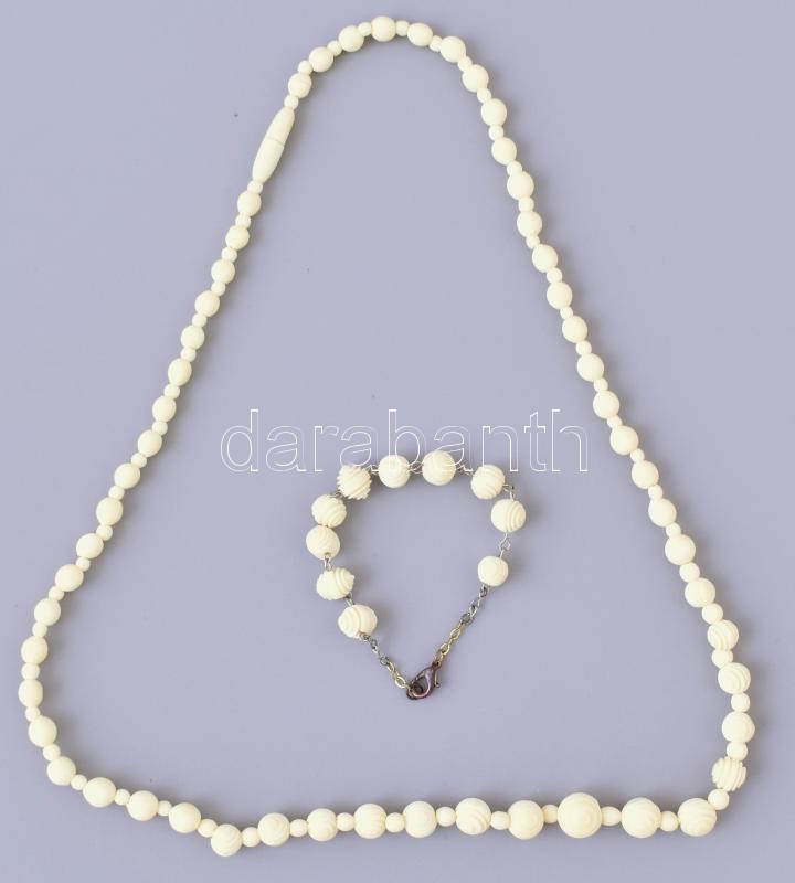 Leírás: Csont nyaklánc és karkötő, h: 56,5 cm és 16 cm