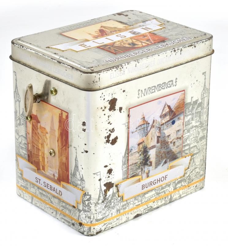 Leírás: Elisen Lebkuchen zenélő bádogdoboz, kopott, működik 12x9x12 cm + zeneszerkezet, működik