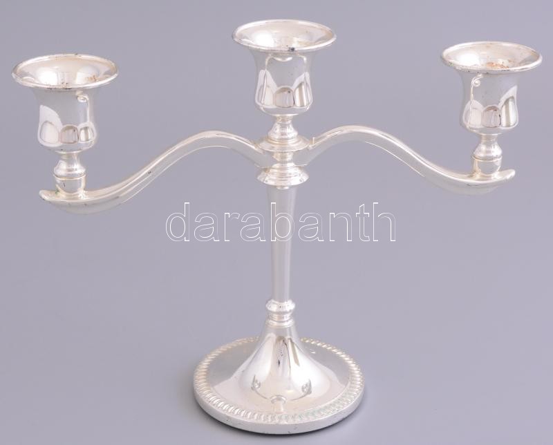 Fém, háromágú gyertyatartó, m: 17 cm