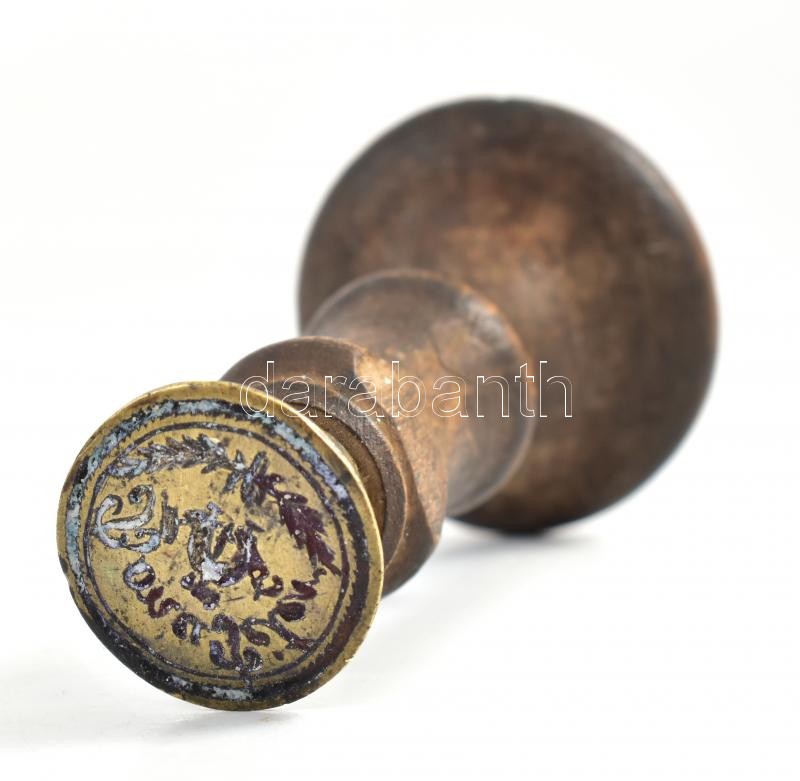 Leírás: Régi pecsétnyomó fa nyéllel, olvashatatlan felirattal, h: 8 cm