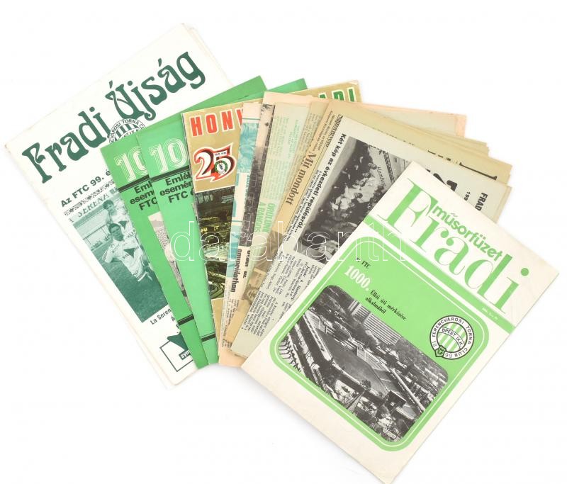 cca 1974-99 össz. 12 db FTC újság és műsorfüzet (Zöld Sasok, Fradi műsorlap, 1000 nap, Fradi Újság stb), többek közt az 1000. Üllői úti mérkőzés alkalmából kiadott műsorfüzet 1977-ből